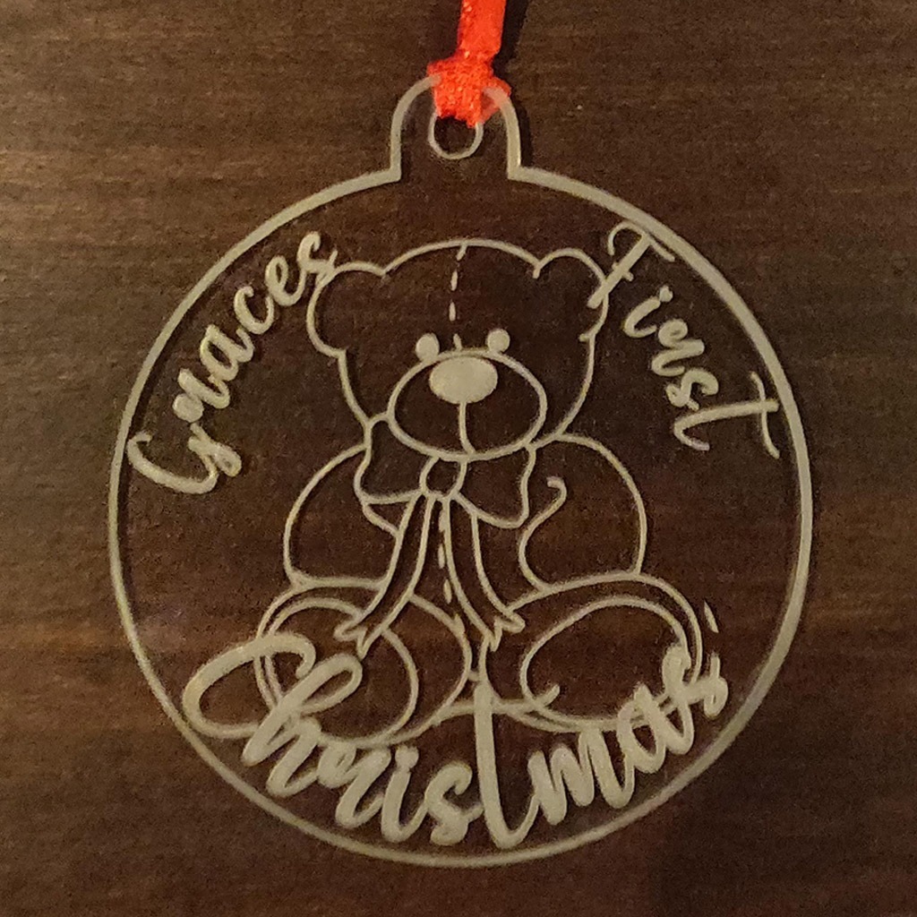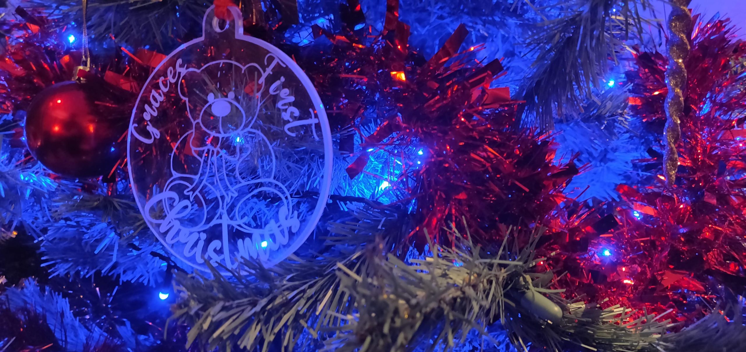 Made from 3mm laser cut acrylic on a Red Ribbon.