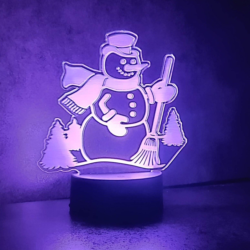 Snowman neon effect edge lit insert is laser cut and etched and comes complete with the following