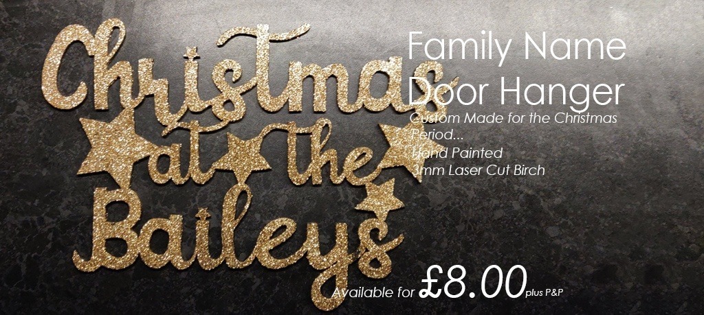 Made from 3mm laser cut Birch, hand painted and give a generous dash of glitter on a Red Ribbon.