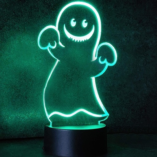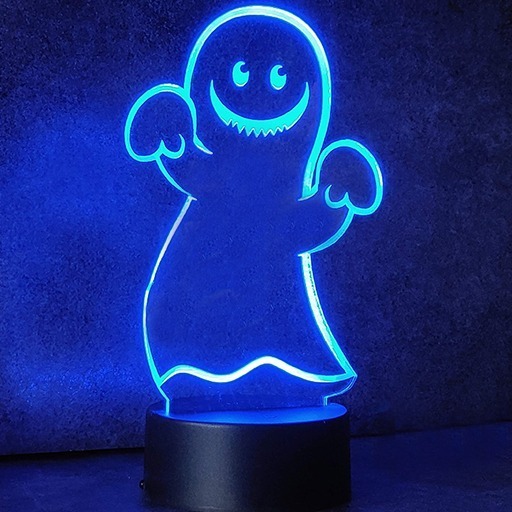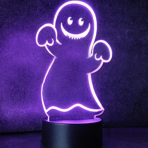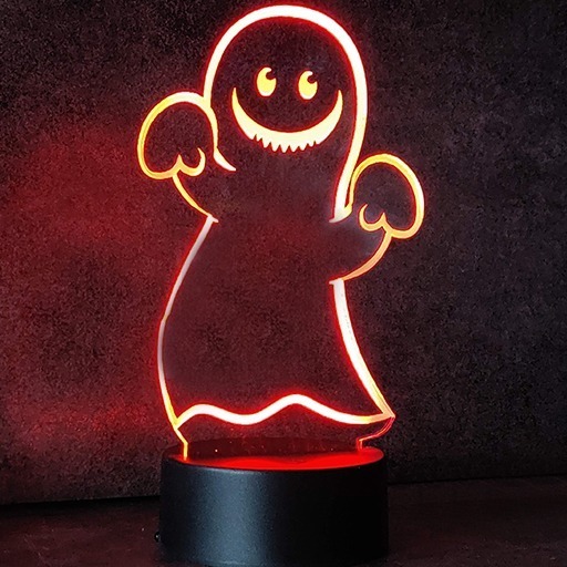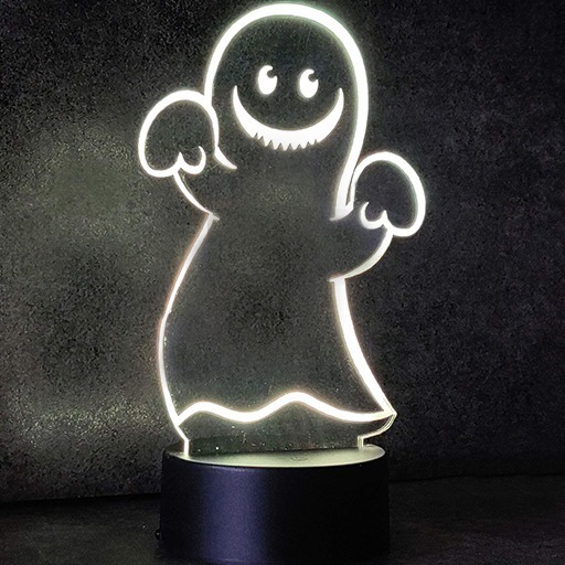 Neon Effect Edge lit Ghostie , laser cut and etched and comes complete with the following