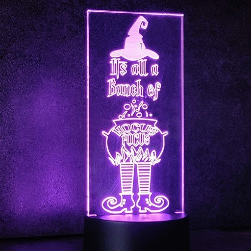 Neon Effect Edge lit Hocus Pocus , laser cut and etched and comes complete with the following