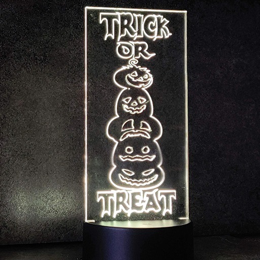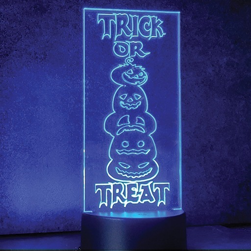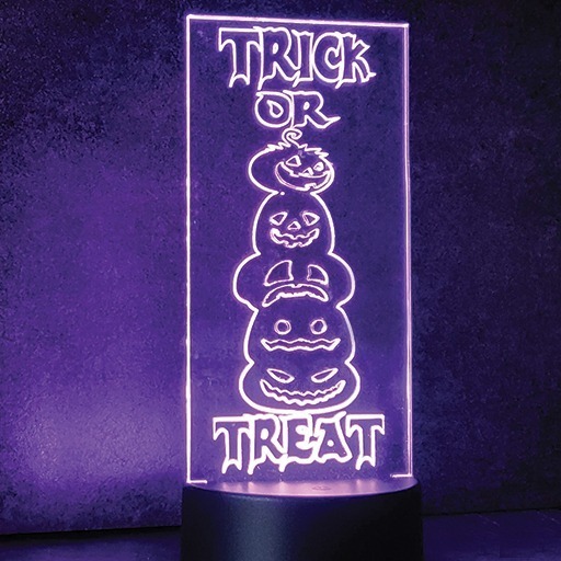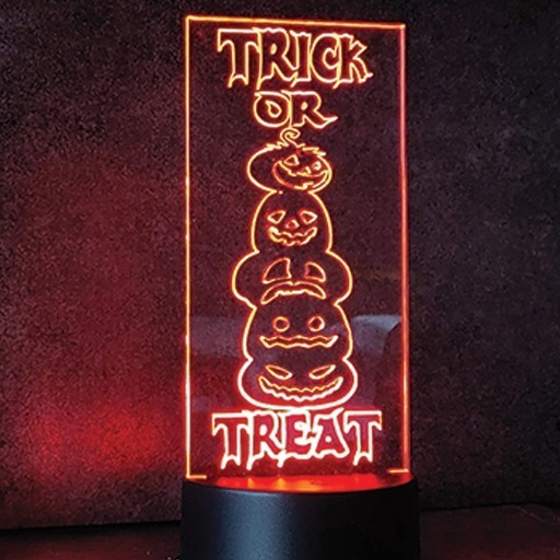 Neon Effect Edge lit Trick or Treat, laser cut and etched and comes complete with the following