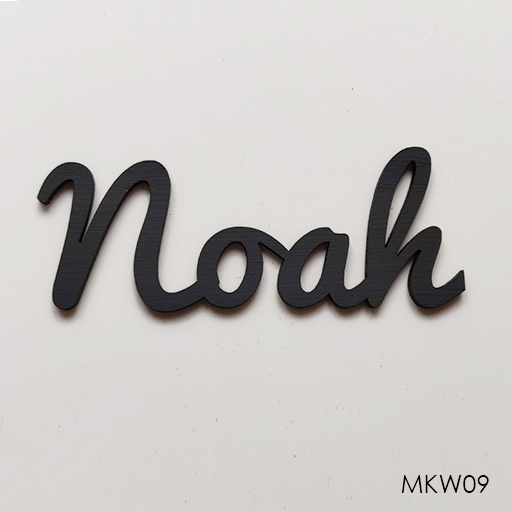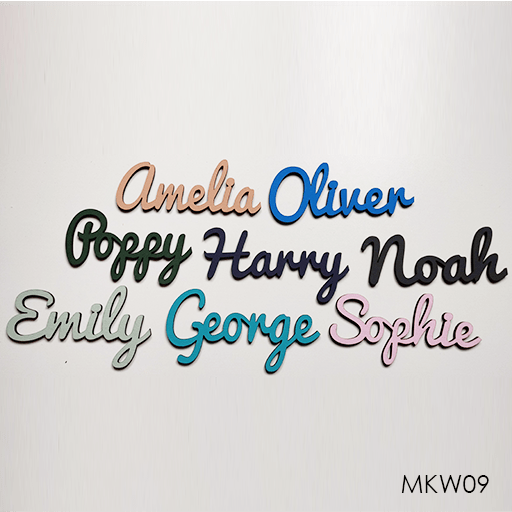 A Personalised wooden name sign,  3mm laser cut With the name of your choice,  just let us know how you want it and leave the rest to us. Please note this product is not painted as standard and comes in its natural finish so can be painted by you with a colour of your choice or choose a colour, size and thickness in the product options. This is with our font variation number 9
